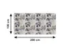 Printul este laminat, ceea ce face ca materialul sa fie lavabil. Se poate sterge usor cu o laveta moale, umeda. Folia rezista la caldura ( temperaturi de pana la 70 grade celsius ) si la umiditate. Se pot pune pe folie cesti sau farfurii calde. Pentru recipiente fierbinti ( oale, tigai), recomandam sa folositi un suport.
