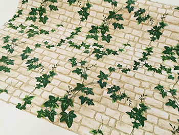 Folosind acest autocolant transformaţi un perete din propria locuinţă într-un zid din cărămidă cu iederă verde. Este ideal pentru a decora balconul sau terasa. Autocolantul imitaţie cărămidă este disponibil la rolă cu lăţime de 120 cm şi se vinde la metru liniar.