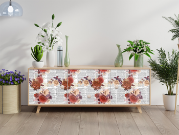 Autocolant decorativ, model ziar cu flori roșii, 100 cm lățime Acest model de autocolant decorativ te ajuta sa creezi un decor nou, dar este si practic. Protejeaza mobila si poate fi indepartat usor, fara sa afecteze suprafata. Folia este autoadeziva. Poate fi aplicata atât pe texturi de lemn cat și pe sticlă, condiția fiind ca suprafața să fie netedă. Printul este laminat, ceea ce face ca materialul sa fie lavabil. Se poate sterge usor cu o laveta moale, umeda. Folia rezista la caldura ( temperaturi de pana la 70 grade celsius ) si la umiditate. Pentru obiecte fierbinti recomandam sa folositi un suport. Are o grosime de 130 microni. Rola are 100 cm lăţime - autocolantul se vinde la metru liniar.