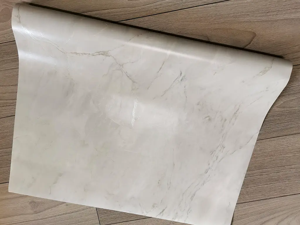 Autocolant mobilă imitație marmură, Romeo Matt White confecţionat din folie PVC. Folia autoadezivă imită marmura de un gri foarte deschis, cu aspect mat.