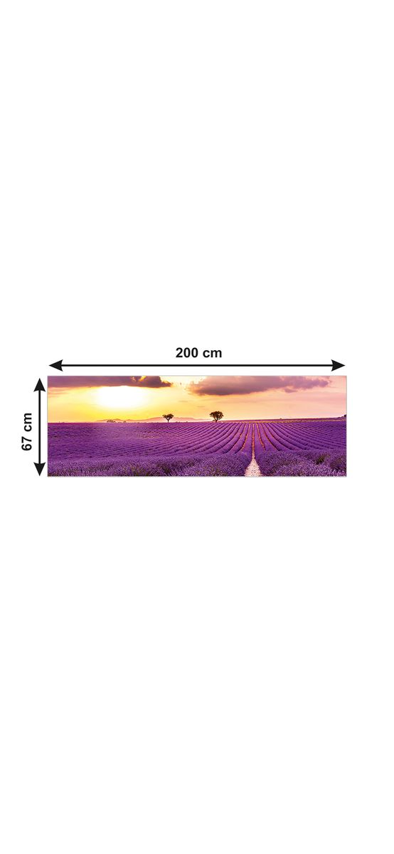 Autocolant perete bucătărie, Folina, peisaj câmp cu lavandă la apus, rolă de 67x200 cm, cu racletă şi cutter incluse Autocolant decorativ - o bordură ...