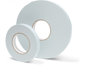 Banda dublu adezivă pe suport de burete alb realizată din spumă de polietilenă cu celule închise și grosime de 1100 microni acoperită cu un liner (protecție) din hârtie albastră siliconată pe ambele fețe.