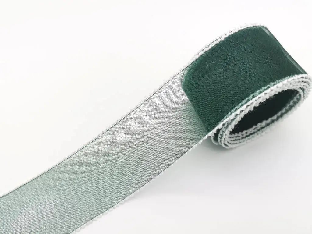 Panglică satin, Folina, verde cu margini albe, 4 cmx10 metri