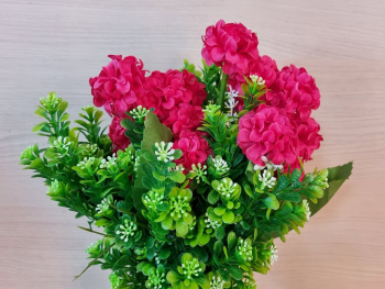 Buchet flori artificiale roz închis şi plante verzi, 30 cm înălţime