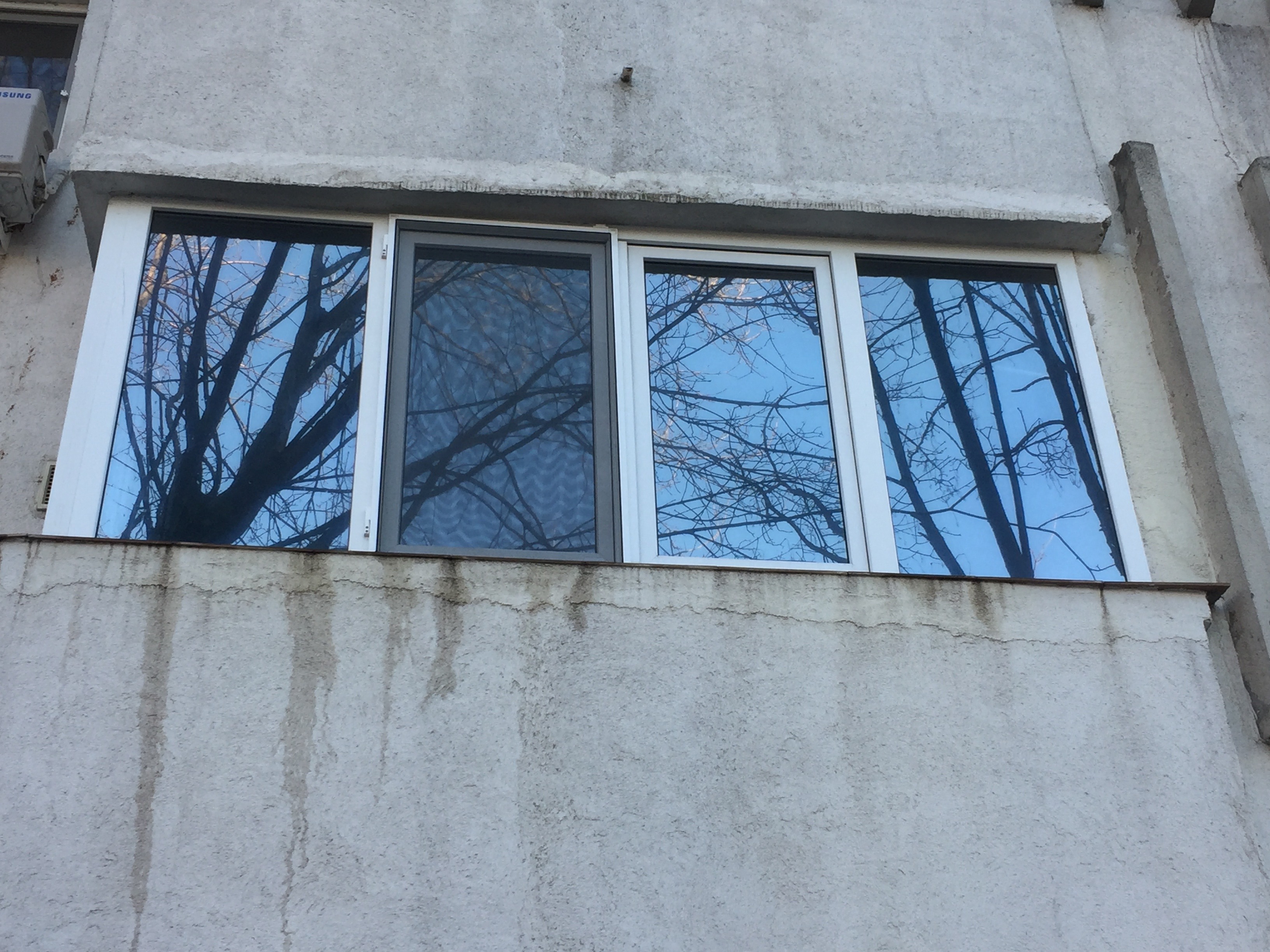 - la exterior geamul este transparent şi se vede din afară în interior ( folia nu mai asigură intimitate ).