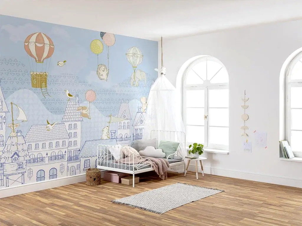 Acest model de fototapet în nuanţe pastel este potrivit pentru amenajarea spaţiilor destinate copiilor.