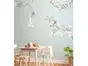 Fototapet floral Apple Bloom, Komar, crengi înflorite şi păsări, 250x250 cm O decoraţiune de perete care aduce o notă de romantism şi căldură decorului. Designul îmbină motive florale, păsări în nuanţe pastel. Fototapetul este printat digital pe vlies. Materialul este lavabil, are o bună rezistenţă la lumină şi poate fi îndepărtat prin dezlipire uscată. Fototapetul este format din 5 făşii verticale, care se îmbină pentru a crea o imagine de 2.5 x 2.5 metri. Adezivul nu este inclus. Pentru montaj este necesar adeziv pentru tapet vlies, care se aplică doar pe perete.