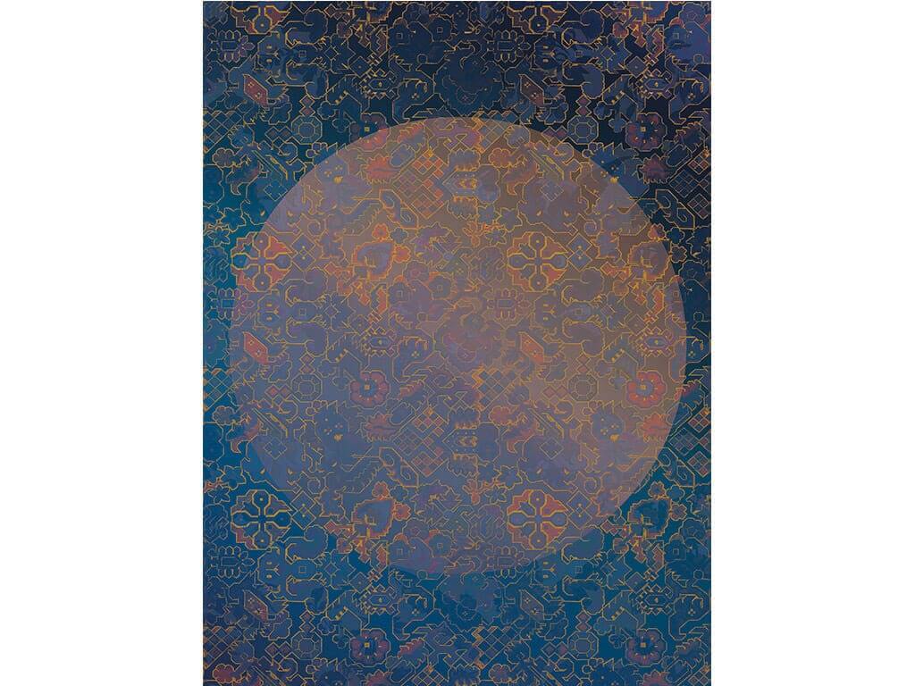 Fototapet La Lune, Komar, model geometric, albastru, 200x270 cm Luna plină se ascunde în spatele unor elemente florale stilizate care creează un joc de lumini ...