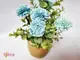 Ghiveci din ceramică cu flori artificiale albastre şi eucalipt, 20 cm