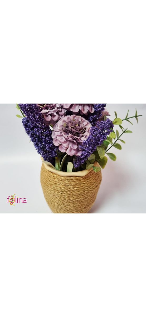Ghiveci din ceramică cu flori artificiale mov, 20 cm ...