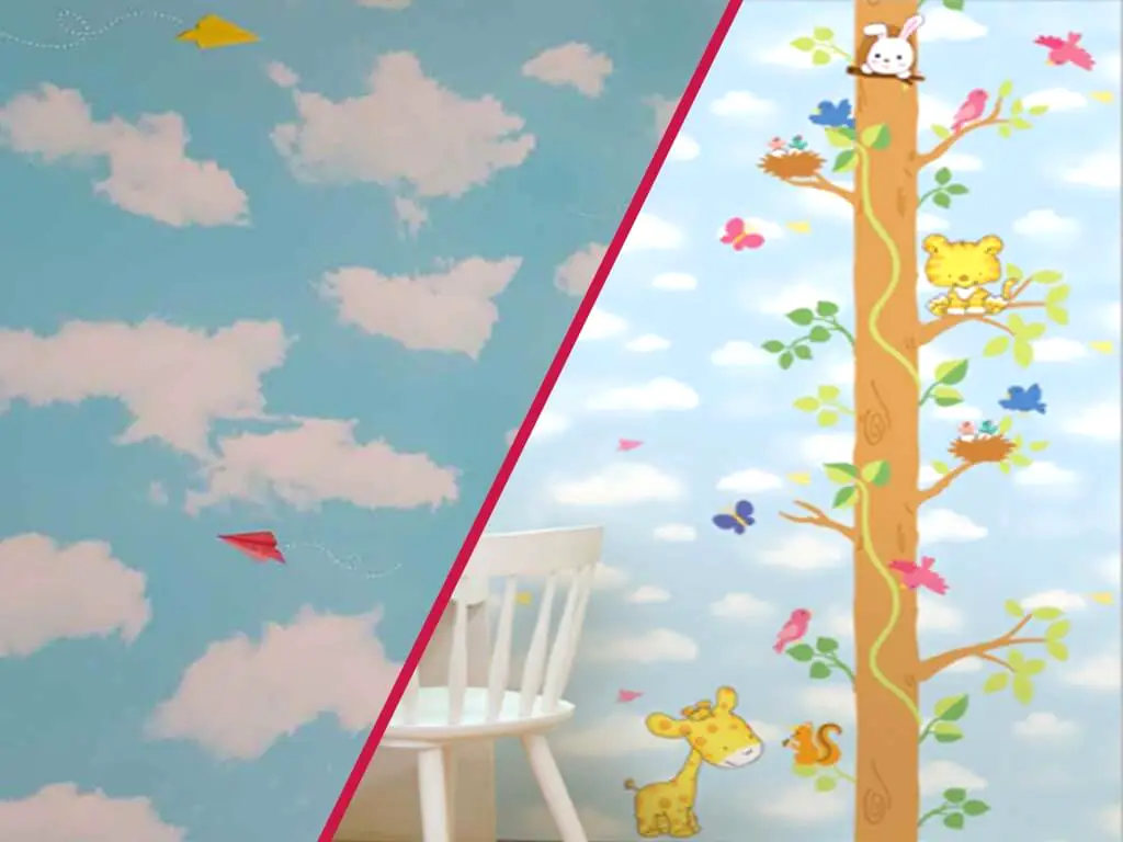Pachetul promo cameră copii conţine un sticker copac cu animale şi o rolă de 2 metri autocolant decorativ cu design nori şi avioane de hârtie colorate. Produsele sunt ideale pentru a decora pereţii şi piesele de mobilier din spaţiile dedicate celor mici.