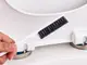 Set din perie de silicon, penson curățare si suport de perete, pentru curățarea toaletelor Capul periei este din silicon moale astfel încât nu zgârie suprafețele, nu se uzează și nici deformează la utilizări îndelungate. Permite curățarea facilă a zonelor greu accesibile cu o perie obișnuită. Pensonul este utilizat în curățarea zonelor înguste cum ar fi șuruburile de prindere a capacului vasului de toaletă. Suportul de perete este prevăzut cu un sertar care permite acumularea apei care se scurge in timp de pe perie. Sertarul se poate scoate și goli foarte ușor. Setul conține si doua sisteme din plastic pentru fixarea pe perete.