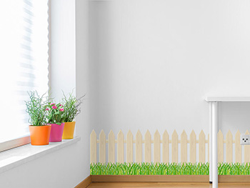 Foloseşte Sticker bordură Gard cu iarbă pentru a crea o bordură decorativă la baza peretelui. Stickerul Gard cu iarbă are o lungime de 140 cm şi o înălţime de 40 cm.