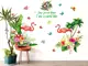 Sticker perete Decor Tropical, palmieri şi păsări flamingo
