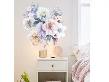 Stickere flori, Folina, decor în nuanţe pastel, 50 cm Un sticker floral în nuanţe pastel: roz, lila, bej. Poate fi aplicat pe perete, mobilier, ...