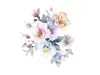 Un sticker floral în nuanţe pastel: roz, lila, bej.