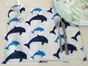 Suport farfurie textil are un imprimeu ideal pentru crearea unui decor cu tematică marină. Pe un fundal bej sunt imprimaţi delfini în două nuanţe de albastru. Suportul este confecţionat din bumbac, are marginile tivite şi dimensiunile de 42x30 cm.