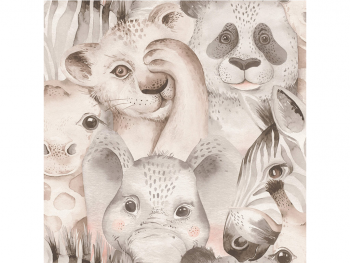 Tapet cameră copii, imprimeu cu animale, Rasch Bambino 252538 - rolă de 5 metri pătraţi Un tapet în nuanţe plăcute de gri şi bej potrivit pentru a decora ...