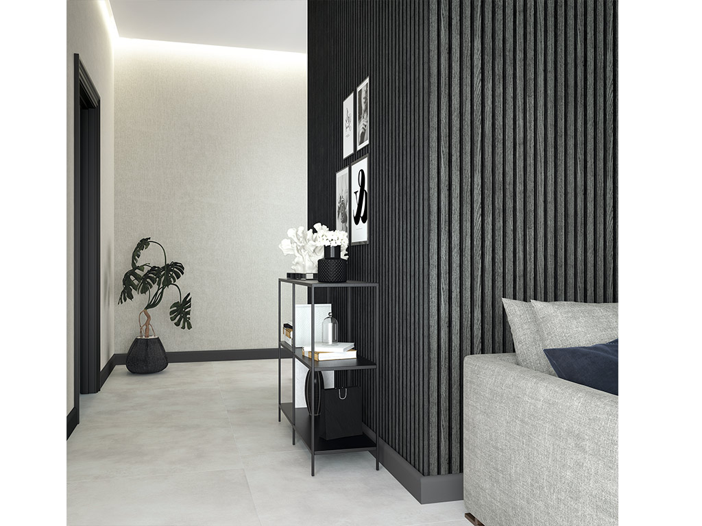 Acest model de tapet imită aspectul riflajelor decorative din lemn. Este un tapet cu aspect modern potrivit pentru living, dormitor, hol.