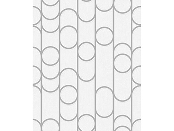 Tapet modern alb, Ugepa, model geometric argintiu, colecţia Galactik - rolă de 0.53x10 metri Tapet modern alb cu design format din dungi şi cercuri. Dungile au o lăţime de 1,5 cm, iar cercurile au un diametru de 8 cm Tapetul este potrivit pentru amenajarea spaţiilor moderne din locuinţe private, birouri, spaţii publice. Tapetul este din vinil compact, lavabil, pe suport vlies. O rolă acoperă o suprafaţă de 5 metri pătraţi.