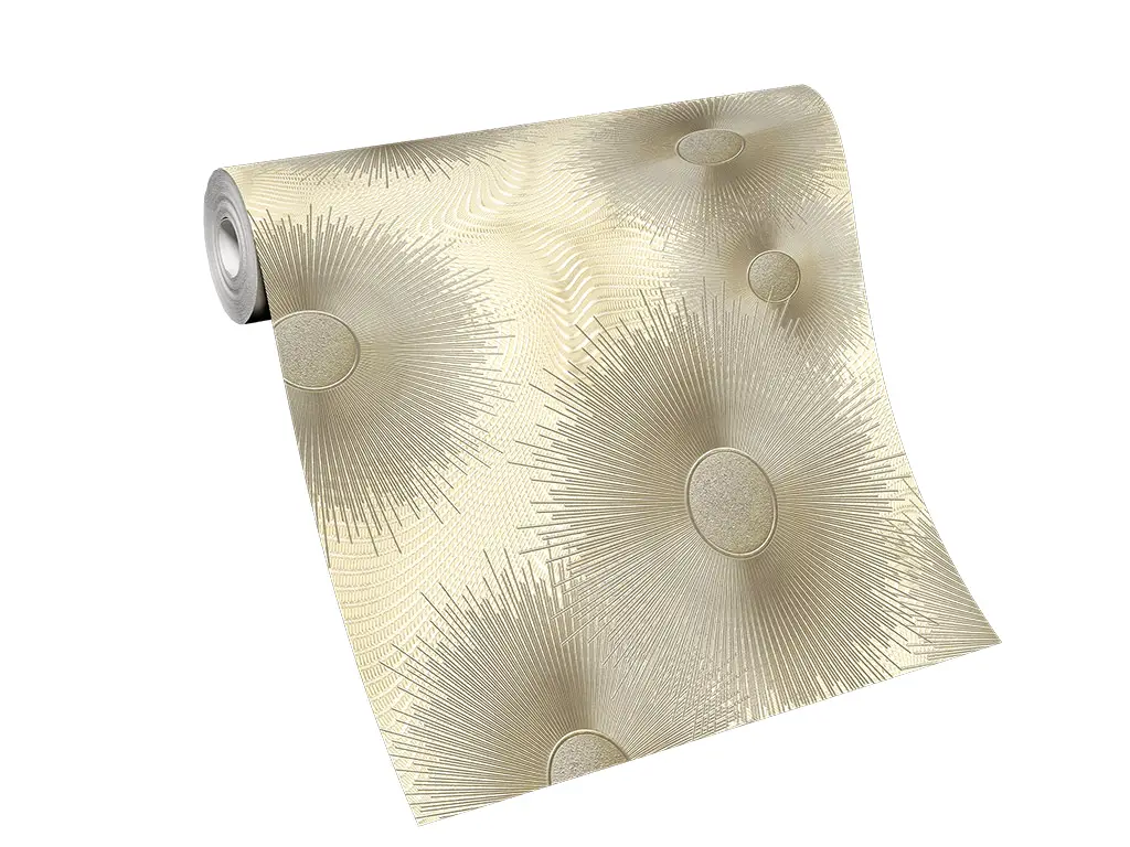Tapet modern bej auriu, Erismann Elle decoration 1019102 Tapet modern cu model geometric bej auriu. Rozetele au aproximativ 25 cm. Materialul este vinil ...