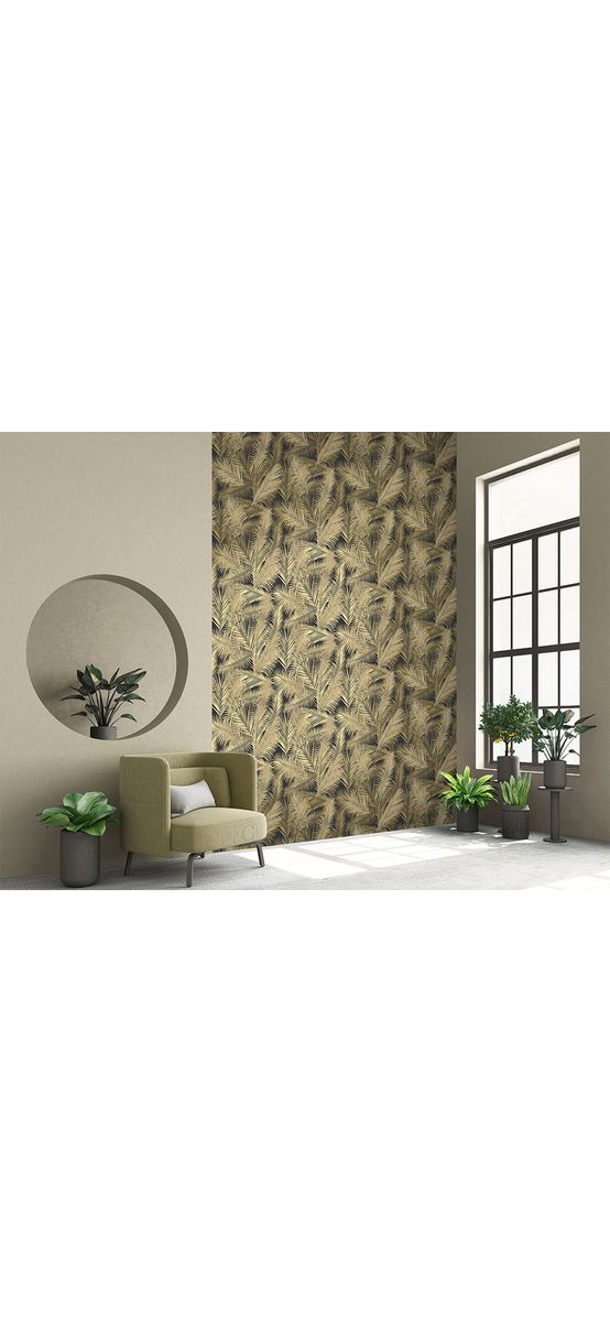 Tapet modern negru cu frunze aurii, Ugepa Eden J98202 Tapetul este din spumă vinilică, pe suport vlies. Este disponibil la rolă de 5 metri pătraţi - 53 ...